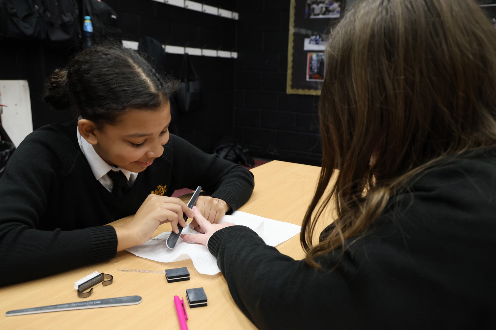 Students then had the opportunity to take part in a hands-on workshop, learning how to correctly prepare hands for a manicure and practising the techniques themselves. The practical session brought learning to life and allowed students to experience the skills involved in the profession.